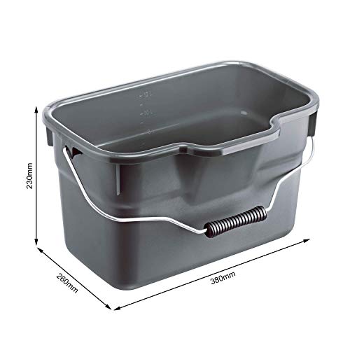 - Confort: cubo rectangular de plástico de óptima calidad, pp, adecuadamente adecuado para los sistemas de limpieza de suelos comunes, con asa revestida que se mantiene adecuada incluye bajo cargas pesadas