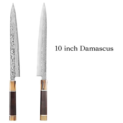 1pc Japón AUS-10 67 Las capas de cuchillo sashimi japonés Damasco sauce Filete de pescado Sushi cuchillo cortador de la carne rebanada salmones Forja cuchillo (Color : 10 inch Damascus)