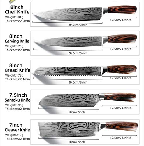 Cuchillo de cocina 5 7 8 pulgadas de acero inoxidable cuchillos de carnicero del cocinero de Santoku Utilidad 440C Lazer Damacuse Patrón Cooking Set Herramientas de cocina (Color : 8 in Chef Knife)