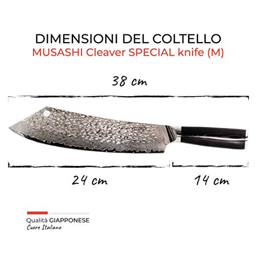 Totiko Japan Knives - Cuchillo de cocina japonés profesional para carne, barbacoa con texto "Special Martillato Musashi - Hoja de 24 cm - 10 pulgadas - Caja de cartón con cierre magnético incluida