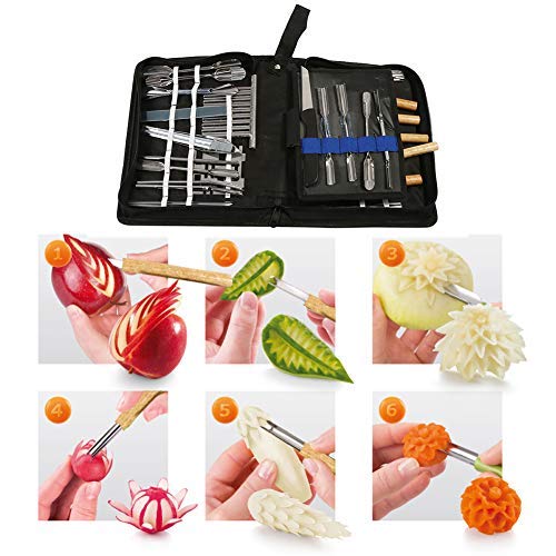 herramienta para tallar fruta set, corta 46 piezas de herramientas de talla culinaria corte de guarnición guarnición kit de herramientas para alimentos vegetales de fruta corte fruta cuchillo tallar