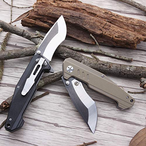- Alta Calidad: Nuestra cuchilla de navaja plegable bolsillo adopta el material AUS-8 acero inoxidable elaborado con el proceso específico del tratamiento de frio-calor que otorga características de robustez, durabilidad y acidez. Puede pinchar, cortar, picar y afilar de forma fiable y precisa.