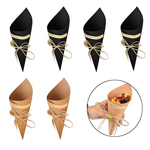 Tangger 100PCS Conos de Arroz para Bodas Hechos,Cono de Confeti Bolsa de Papel de Caramelo Retro Kraft Papel Fiesta de vacaciones Regalo Embalaje(50 Negro,50 Marrón)