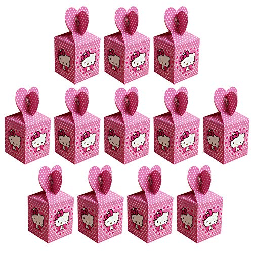 Qemsele Cajas De Fiesta Bolsas de cumpleaños, 12Pcs Regalo Cajas, Cajas de Caramelo Tema Reutilizable Bolsas de Fiesta Bolsas para cumpleaños niños la Fiesta favorece la Bolsa Bolsas Fiesta (Kitty)