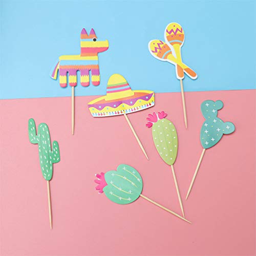PRETYZOOM 35 Piezas Fiesta de México Cupcake Toppers Recoge Cactus Hat Alpaca en Forma de Pastel Toppers Postre Fruta Picks Party Cake Stick Picks para Fiesta de Verano Decoración de Cumpleaños