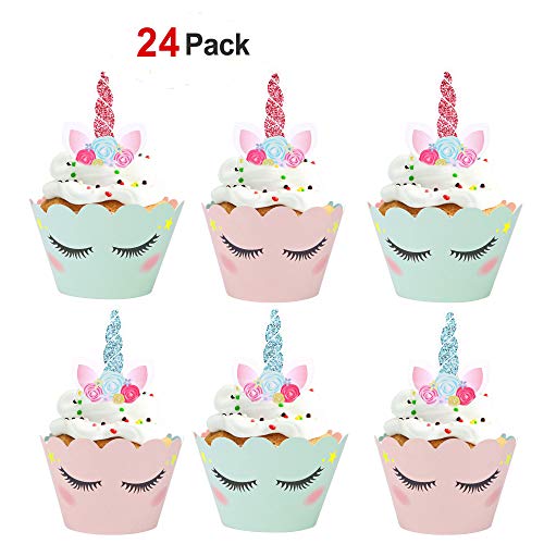 - 【Una fiesta de cumpleaños de unicornio decoraciones para niñas】 Los juegos de favores de parte de cupcake toppers y envolturas de unicornio son un éxito para fiestas temáticas de unicornios, barras de caramelo de niños niñas, decoración de pasteles, adornos de pastel de helado, bodas, baby shower, eventos corporativos, aniversarios , fiesta del té, etc.