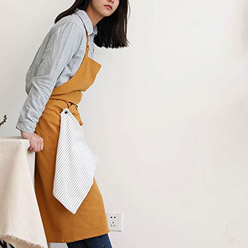 Buyfunny01 Delantal con Peto Cocina Jardinería Mezcla algodón Hogar con Bolsillos Estilo japonés Ajustable Trabajo Informal Cocina Pintura Sólido Fácil Limpieza(Amarillo)