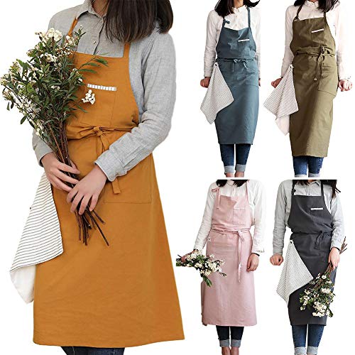 - Diseño personalizado: Delantal de lino de algodón suave Vestido de delantal con delantal clásico con espalda cruzada, hay dos bolsillos grandes en la parte delantera, que pueden almacenar cómodamente los artículos que necesita temporalmente.