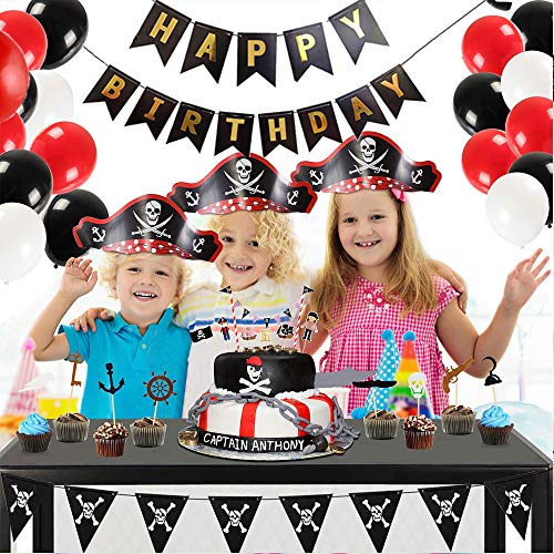 SPECOOL Decoraciones de Fiesta de cumpleaños Pirata con Pirata Tatuaje Temporal Banner Barco Pirata Globos de Barco para niños 1 ° 2 ° 3 ° 4 ° 5 ° 10 ° Suministros de cumpleaños temáticos de Piratas