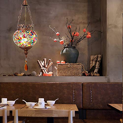 Artpad Estilo mediterráneo Turco Marroquí Oval Colgante Luz Decoración Hecho a mano Sombra de vidrio Restaurante Bar Café Sala de estar E27 Mosaico de una sola cadena Techo de luz colgante