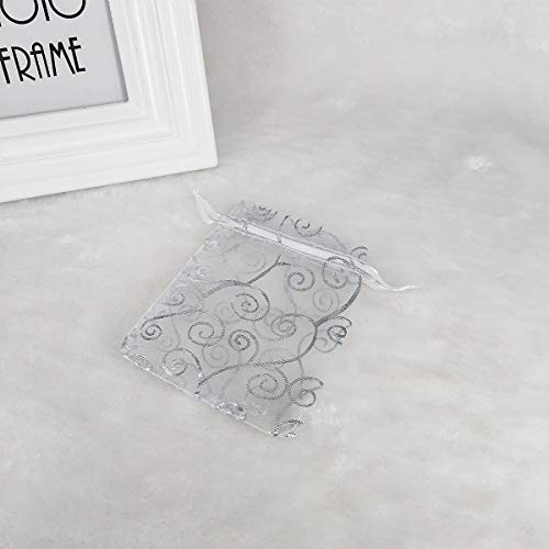 YFZYT 100 Piezas Organza Bolsas Regalo Bolsas para Joyas Bolsillo para Dulces, Bolsa Embalaje Colores para Boda Almacenes Regalo Comestibles Accesorios Pequeños - 13x18 cm, Blanco Plateado