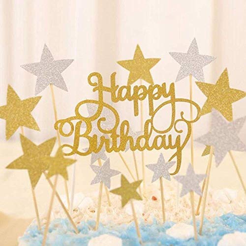 - El paquete incluye: 1 Happy Birthday Cake Topper y 50 Yellow Star Picks.