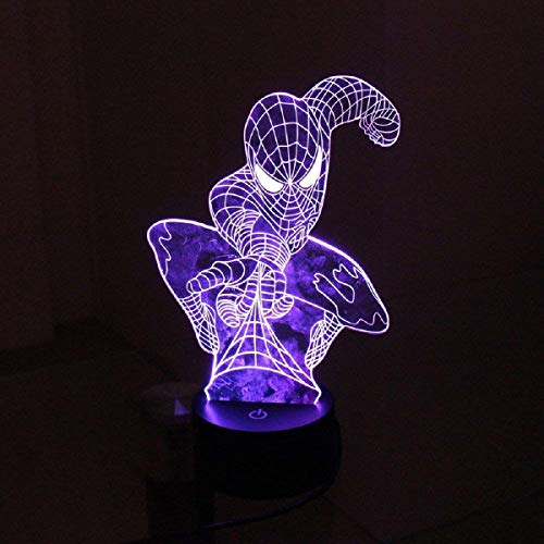 Tipmant Luz llevada 3D Noche de 7 Colores Illusion Lighting Lámpara de Mesa Decoración Hogareña Regalos Habitación de Niños Decoración (Spider Man)