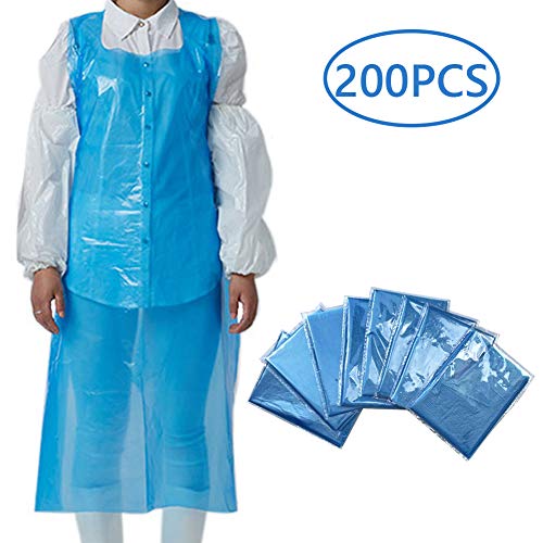 ShineBlue - 200 delantales desechables impermeables de polietileno para adultos y niños, más gruesos y duraderos, para cocinar, limpiar, dibujar, hacer barbacoas, evitan manchas de manera eficaz