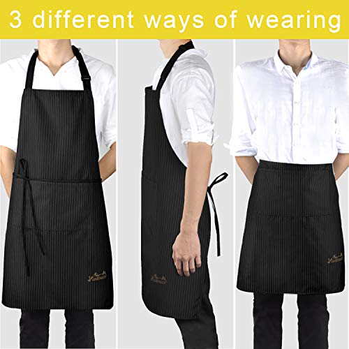 Viedouce 2 Piezas Delantales Impermeables Ajustables del Cocinero con Bolsillo Cocina Delantale para Mujeres Hombres,Delantal Chefs Cocina (Raya Negro)