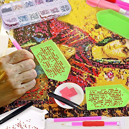 - Práctico juego de herramientas de pintura de diamantes: el juego de herramientas incluye 1 caja de almacenamiento, 1 rodillo rojo, 10 bloques de plástico rojo, 20pcs Bolsa de taladro, 1 etiqueta adhesiva, 4 lápices de diamantes (3 tipos diferentes), 2 tableros de plástico verde, 1 pinza. 1x plato blanco, 1x corrector grande, 42 piezas en total, es el regalo perfecto para novia, niño, amante