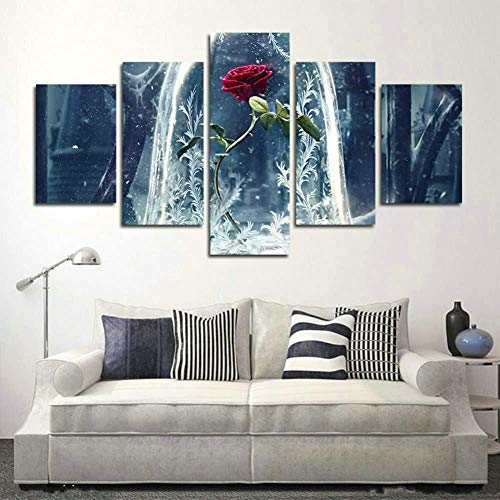 LAKHAFZY 5 Lienzos Marco Lienzo Arte De La Pared Pintura Moderna Cartel Decoración para El Hogar La Bella Y La Bestia para La Sala De Estar HD Imprimir Imágenes Modulares