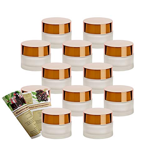 gouveo - Juego de 12 tarros vacíos de cristal mate (30 ml, con cierre de rosca, dorado y folleto, bote de crema, bote de base)