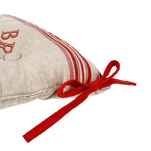 Lote de 4 cojines de sillas acolchados con ataduras - 40 x 40 cm - Estilo restaurante - Colores Lino y Rojo