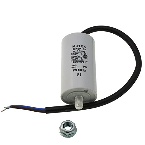 Condensador de Arranque de Motor de Miflex; Capacidad 8µF, tensión 450 V, Dimensiones 35 x 65 mm, Cable M8