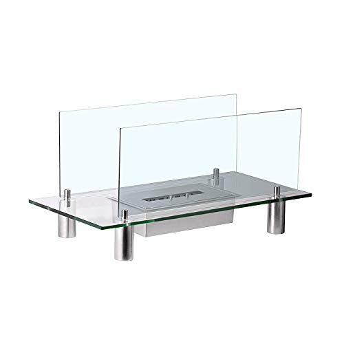 - Tiene una estructura de metal y cristal templado y dispone de un quemador de acero inoxidable de 3 litros que contiene una fibra de vidrio específica que aumenta la autonomía hasta 7 horas. Completo con kit de montaje y de apagado. Potencia generada de 2,84 kW/h.
