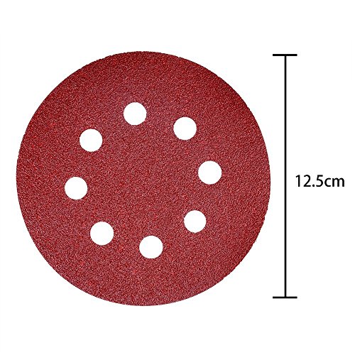 - Gancho y bucle con respaldo, 5 pulgadas de diámetro, adecuado para usar con lijadoras de órbita aleatorias; Pre perforado con 8 agujeros para la extracción de polvo, fácil de usar