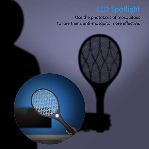 - 【Matamoscas de Alta Eficiencia】 Esta matamoscas eléctrica tiene una potente red de 4000 voltios. Solo necesita presionar el botón, el poderoso poder del raqueta antimosquitos eléctrico puede ayudarlo a matar rápidamente moscas, mosquitos y otros insectos voladores.