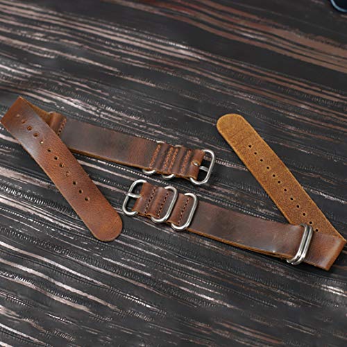 OTAN 18mm/20mm/22mm Correa de Cuero Hecho a Mano cómodo Anillo Correa Hebilla café, 18mm