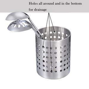 - El diseño de círculos recortados en la parte delantera y trasera permite que el agua fluya a través de la base cuando utiliza este porta utensilios como una rejilla de secado