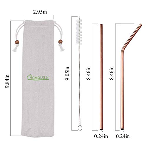 HOMQUEN Pajitas de Acero Inoxidable de Cobre de 18 Piezas, pajitas de Bebida Reutilizables de Oro Rosa de 8.5 '', con Estuche portátil (8 cepillos Rectos / 8 doblados / 2)