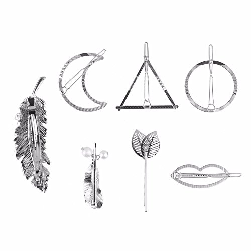 Beauty7 Horquillas Plata Pinza de Pelo Clip Metal Hueco Triángulo Geométrico Círculo Hoja de Plumas Perlas Luna Estrella Accesorios de Pelo Vintage Fiesta Boda 7pcs