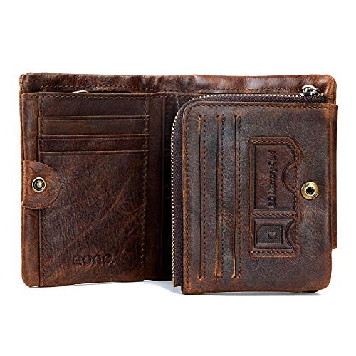 Eono Essentials - Cartera de Hombre de Piel auténtica, Bloqueo RFID, Espacio para Guardar la Tarjeta de crédito, la Tarjeta TF y la Tarjeta SIM, Bolsillo Monedero (Café)