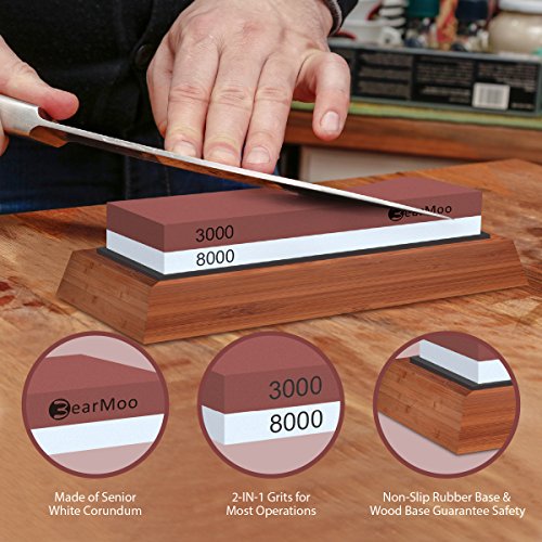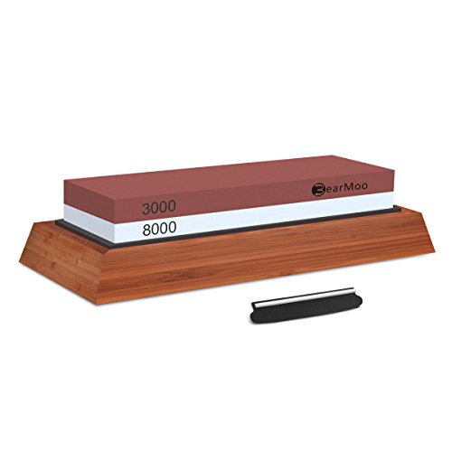 Piedra Afilar Cuchillos, Bearmoo Afilador de Agua 3000/8000 Grano Piedra Afilar –Piedra Afilar Formones - Base de Madera Y GuÍA Del Cuchillo Incluido