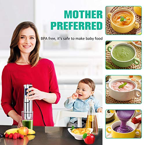 - POTENTE PERO TRANQUILO: Batidora de mano con un motor de CC de alta velocidad de 500W, puede mezclar fácilmente los ingredientes a la perfección sin ruidos molestos. El sistema de 4 cuchillas de alta potencia y afilado le permite hacer deliciosas frutas o verduras de manera eficiente. Tiempo y energía ahorrados.