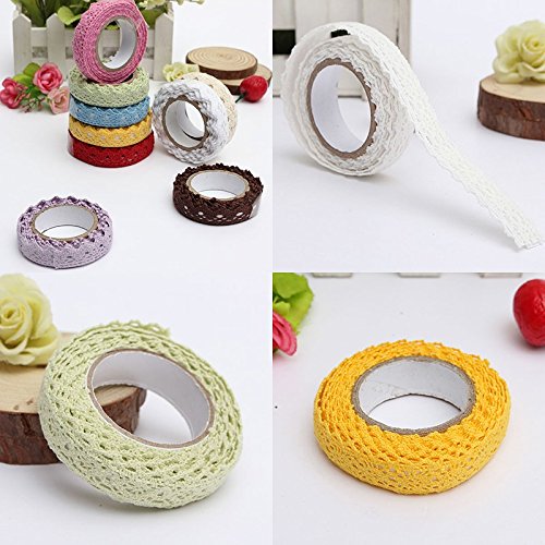 Buena Material y alta calidad:La cinta se creaba con la tela de encaje que tiene muy buena calidad, no es fácil de romper. La parte posterior está cubierta con pegamento, buena adhesión, fácil de adherir a todo tipo de superficies, después de su uso, no es fácil dejar pegamento residual.
