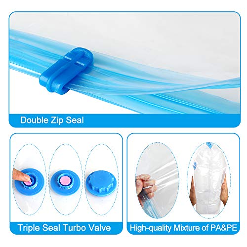 Bolsas de Almacenaje al Vacío - Paquete Jumbo (80 X 100cm) de 6 Bolsas Organizadoras de Ropa con Cremallera - Ahorra Espacio - Incluye una Bomba Manual Gratis para los Viajes Hogar