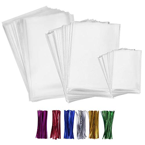 - El paquete contiene: 300pcs bolsos del opp y 300 PC lazo de la torsión. (100 bolsas de 10 x 15 cm, 100 bolsas de 12,7 x 7 pulgadas, 100 bolsas de 6 x 8 pulgadas, 50 corbatas de oro de 50 piezas de corbata torcida plateada, 50 lazos de torsión roja, 50 lazos de torsión rojos, 50 lazos de giro azul, 50 piezas de corbata de torsión verde, 50 unidades púrpura
