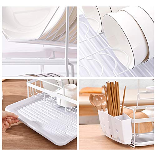 Feibrand Escurridor de Platos Escurreplatos de Cocina 2 Niveles Plastico Bandeja Soporte Platos Tazas Blanco