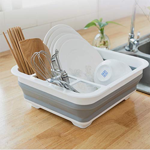 SAMMART - Escurridor plegable con escurridor, juego de tendedero plegable, organizador de vajilla portátil, ahorro de espacio (gris)