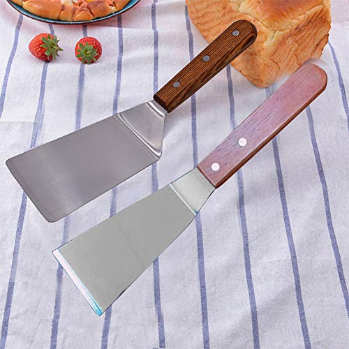 Genrics 2 Piezas Juego de Espátula de Acero Inoxidable Espátula con Mango de Madera Pancake Espátula Raspador de Parrilla Accesorios para Cocina Parrilla Teppanyaki