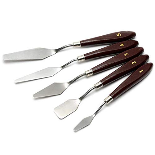 Fuumuui Juego de Cuchillos de Pintura de 5 Piezas Herramientas de Pintura de Cuchillo de Paleta espátula de Mezcla espátula de Acero Inoxidable Mango de Madera