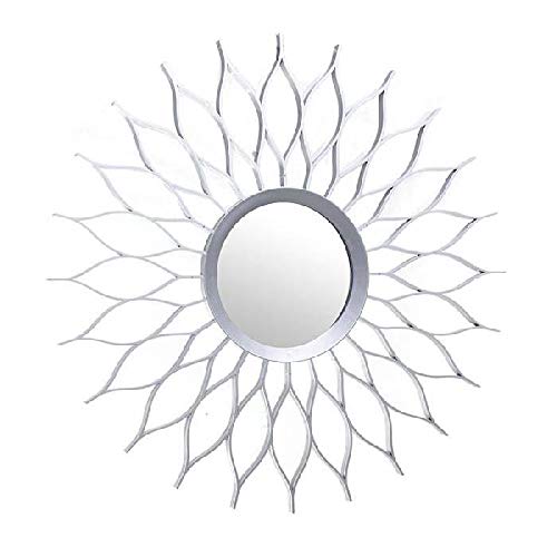 - Con estilo: espejo redondo de pared para añadir un toque elegante a cualquier habitación; diseño ornamentado; modelo plateado