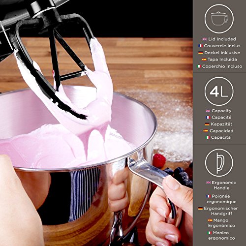 Duronic SM100 Batidora Amasadora de Repostería 6 Velocidades y Bol de 4 L 450W 3 Accesorios para Batir y Amasar