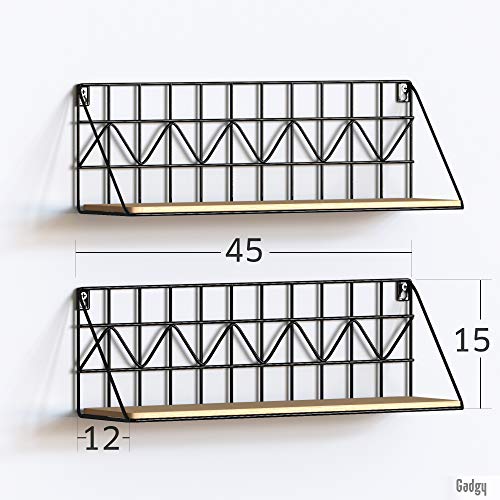 Gadgy estanteria de Pared metalica flotante| Juego de 2 estanterias metalicas y Madera | 45 x 12 x 15 cm. | Baldas Pared decorativas | Para Hogar, Cocina, Bãno