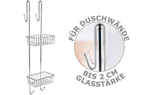 - DISEÑO FÁCIL DE COLGAR - Esta estantería de baño de acero cromado no necesita taladros ni ventosas, simplemente cuelgue la estanteria para ducha en la mampara de vidrio o puerta - podrá colocarla como si fuera una estantería de baño esquina
