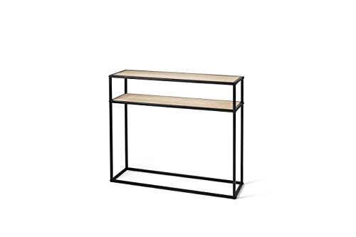 LIFA LIVING Estantería de pie Lateral, Estantería de Lado, 2 Estantes, para Dormitorio, salón, recibidor, Metal Negro y Madera de Caucho, 100 x 30 x 85 cm, Soporta 30 kg