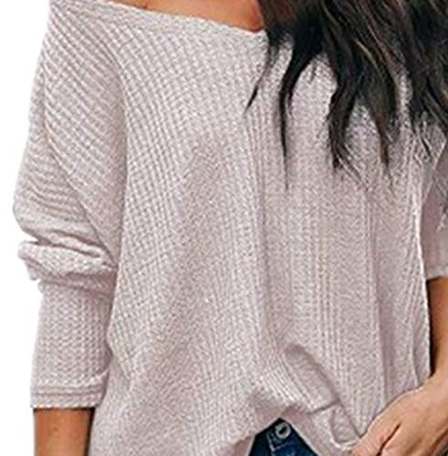 ROVNKD - Top de Mujer para Trabajo, de Manga Larga, con Estampado de Color sólido Rosa M
