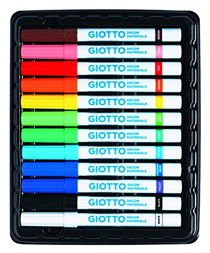 Giotto Decor Materials - Estuche 12 rotuladores decorativos multisuperficie, tinta base agua