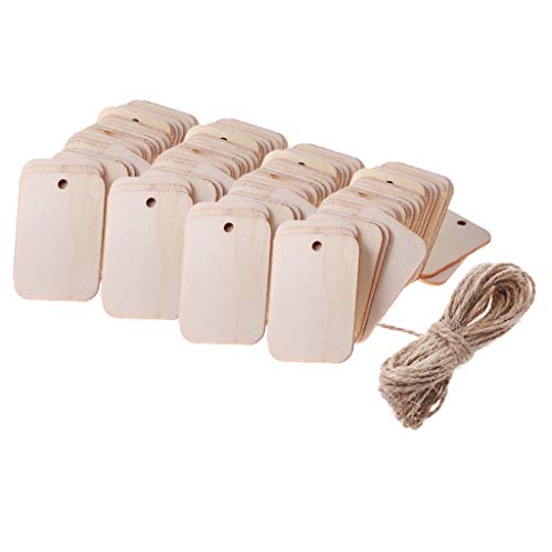 SIMUER 100pcs Etiquetas decorativas de madera artesanal en forma rectangular de madera diseño con cuerda decoración