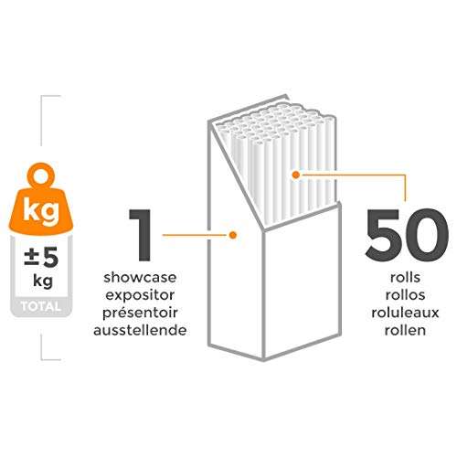 - LOS 50 ROLLOS* VIENEN CON UN PRACTICO EXPOSITOR (caja de cartón robusto descapotable) fundamental para presentar los rollos de forma atractiva, un correcto almacenaje y un transporte seguro. Todo un plus en tu compra al por mayor que beneficiará a tu negocio y que también facilitará el guardarlo en casa o desplazarlo a un evento. (*) Retractilados individualmente y tamaño 70 cm de ancho y 200 cm de largo (0,7 m x 2 m).